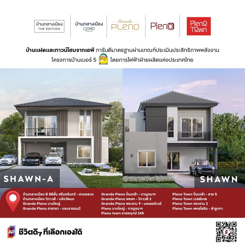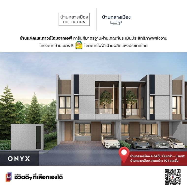 บมจ. เอพี ไทยแลนด์ ผู้นำธุรกิจพัฒนาอสังหาริมทรัพย์ของไทย ภายใต้คำมั่นสัญญา “ชีวิตดีๆ ที่เลือกเองได้” นำโดยนายเมธา รักธรรม รองกรรมการผู้อำนวยการ สายงานพัฒนาธุรกิจทาวน์โฮมและบ้านแฝด เผยโฉม 13 โมเดลทาวน์โฮมและบ้านแฝด ต้นแบบบ้านประหยัดพลังงานจากเอพี หลังคว้ารางวัลการันตีจากโครงการ “ฉลากบ้านประหยัดไฟฟ้าเบอร์ 5” จัดโดยการไฟฟ้าฝ่ายผลิตแห่งประเทศไทย (กฟผ.) มาครองด้วยการเป็นต้นแบบที่อยู่อาศัย ที่โดดเด่นใน 4 มิติ เริ่มตั้งแต่ นวัตกรรมการออกแบบ Eco Design การดีไซน์บ้านหน้ากว้างสูงสุด 11.5 เมตร พร้อมเปิดช่องแสงหน้าต่างที่เปิดรับลมและแสงจากธรรมชาติได้อย่างเต็มที่ ช่วยให้บ้านอยู่สบาย การเลือกวัสดุที่มีประสิทธิภาพ ลดการสะสมความร้อนให้บ้านมีความเย็นได้ตลอดทั้งวัน ติดตั้งกระจกตัดแสง Green Glass ช่วยลดความร้อนจากภายนอก การเลือกใช้สีพิเศษ UV Shield ที่ช่วยสะท้อนความร้อนจากแสงแดดออกนอกตัวบ้าน และการติดตั้งอุปกรณ์ไฟฟ้าที่ติดฉลากประหยัดไฟฟ้าเบอร์ 5 พร้อมทั้งเทคโนโลยีสมาร์ทโฮม และการดีไซน์สวนสีเขียวขนาดย่อม เชื่อมต่อธรรมชาติเข้าสู่ตัวบ้าน เป็นต้น