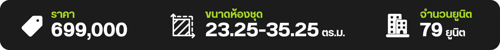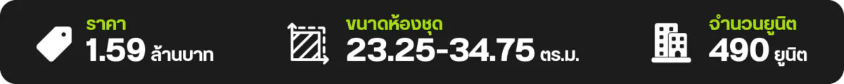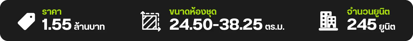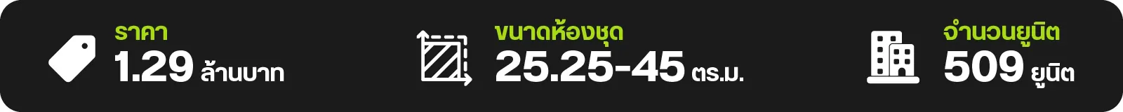 - 1 ห้องนอน 1 ห้องน้ำ ขนาด 24.50-25.75 ตร.ม.