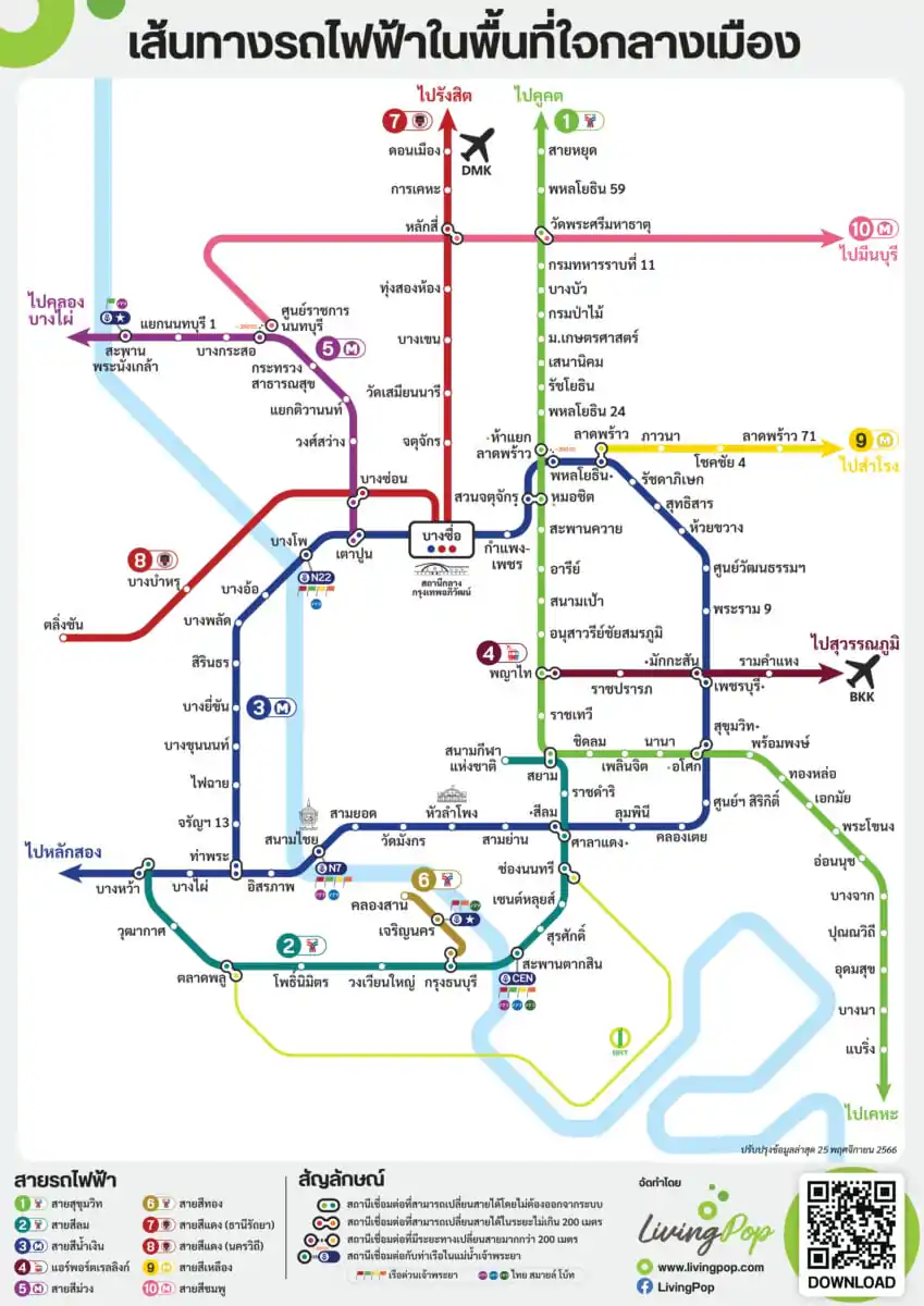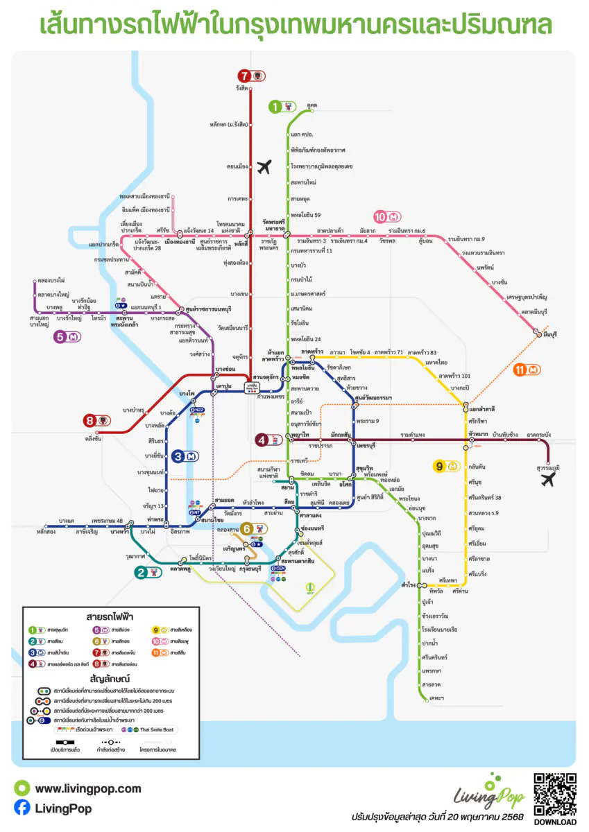 เผลอแปปเดียวกรุงเทพฯ ของเราก็มีรถไฟฟ้าเปิดบริการตั้ง 10 สายแล้ว! ล่าสุดก็คือรถไฟฟ้าสายสีชมพู ที่เพิ่งเปิดบริการแบบ Trial Run หรือการทดสอบเสมือนจริงที่ให้เราไปลองนั่งกันได้ฟรี แถมยังมีอีก 3 สายที่อยู่ระหว่างก่อสร้างคือสายสีม่วง ส้ม และสายสีชมพูที่จะต่อขยายเข้าไปในอิมแพ็คเมืองทองธานี ที่จะเสร็จในอีกไม่กี่ปีนี้ 😁 วันนี้ LivingPop ชวนทุกคนมาอัพเดตแผนที่สายรถไฟฟ้าใน กทม.-ปริมณฑลกันครับ สายไหนใกล้บ้าน สายไหนผ่านออฟฟิศ เล็งๆ กันไว้ได้เลย อีกไม่นานจะได้ใช้กันแล้ววว