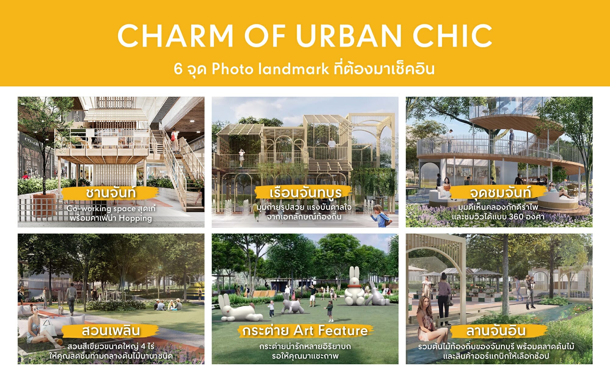 นอกจากนี้ พลาดไม่ได้กับ Photo landmark สุดเก๋ เสน่ห์แห่งเมืองจันท์ภายในศูนย์การค้า ได้แก่ ‘เรือนจันทบูร’ จุดถ่ายรูปที่ดีไซน์จากเสน่ห์สุดคลาสสิกของท้องถิ่นมองเห็นวิวหลักล้านทั้งแม่น้ำและภูเขา, ‘จุดชมจันท์’ ได้แรงบันดาลใจจากบ้านต้นไม้ Spiral café ด้านล่างมีคาเฟ่เครื่องดื่ม ส่วนด้านบนเป็นจุดชมวิวที่เห็นคลองภักดีรำไพได้แบบ 360 องศา, ‘ลานจันอิน’ พื้นที่นั่งพักที่นำต้นไม้ประจำจังหวัดอย่างต้นจันอิน ไม้มงคลประจำจังหวัด และผลไม้อย่างมะปี๊ด มังคุด ทุเรียนมาตกแต่ง พร้อมสินค้าออร์แกนิกให้เลือกช้อป, ‘ชานจันท์’ Co-working space พร้อมคาเฟ่สุดชิค และ Art Feature กระต่ายสุดน่ารักสัญลักษณ์ของจันทบุรี ในหลากหลายอิริยาบถ