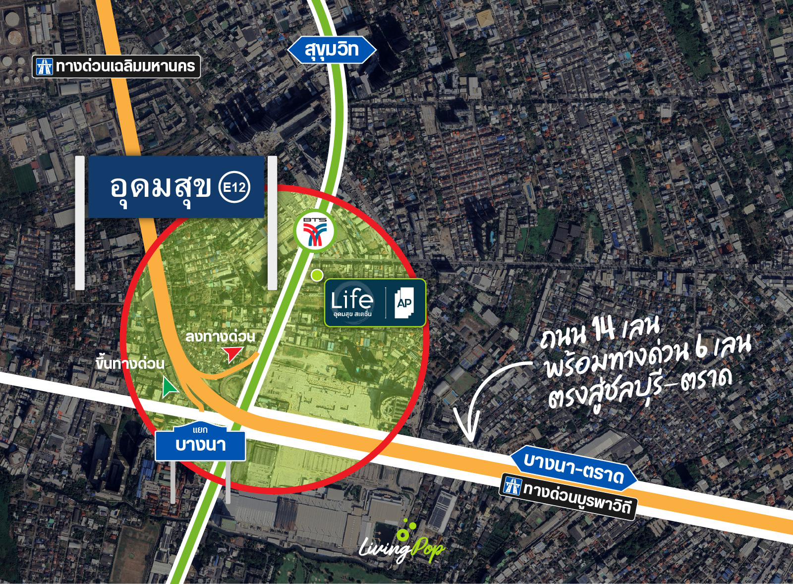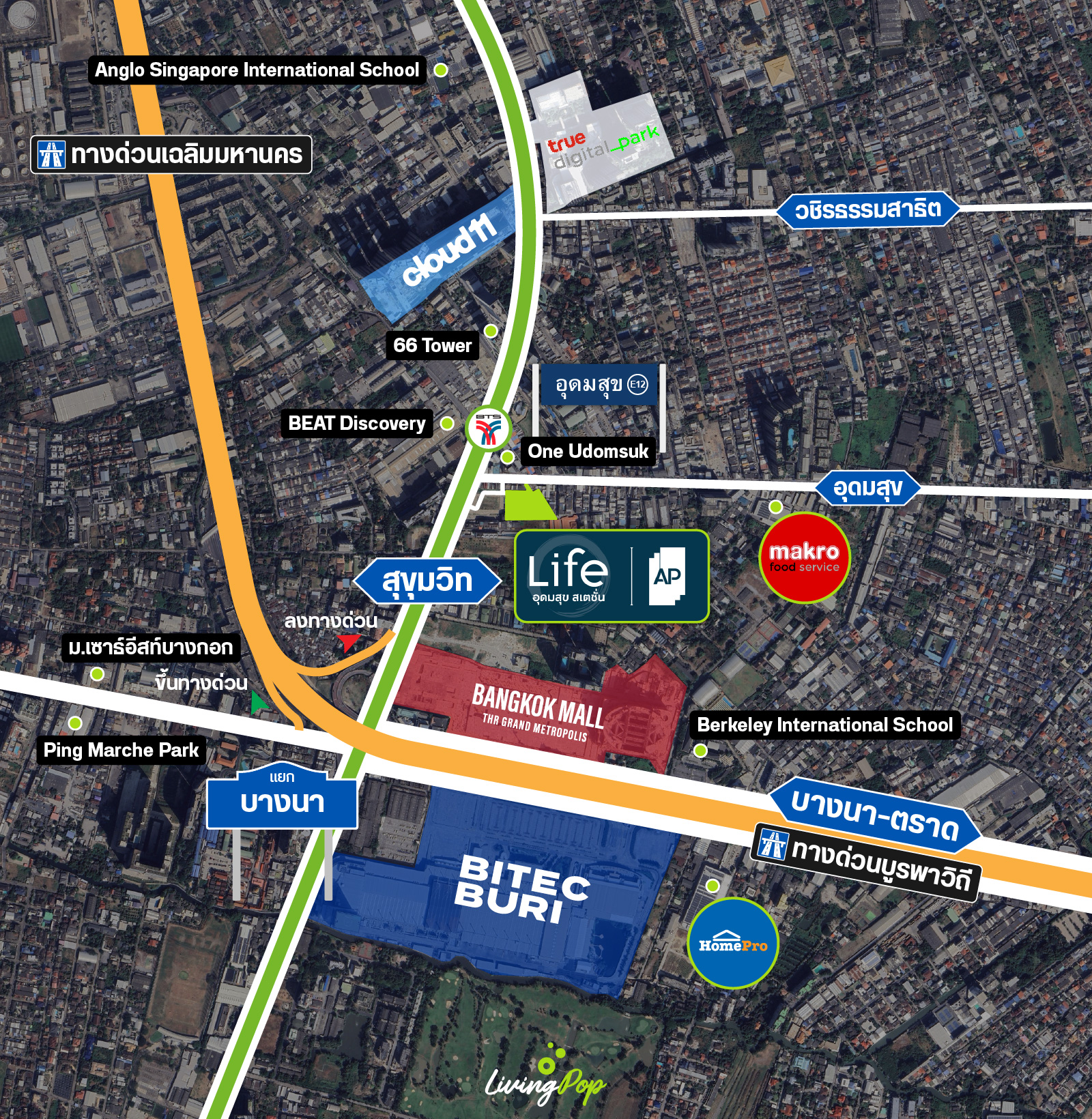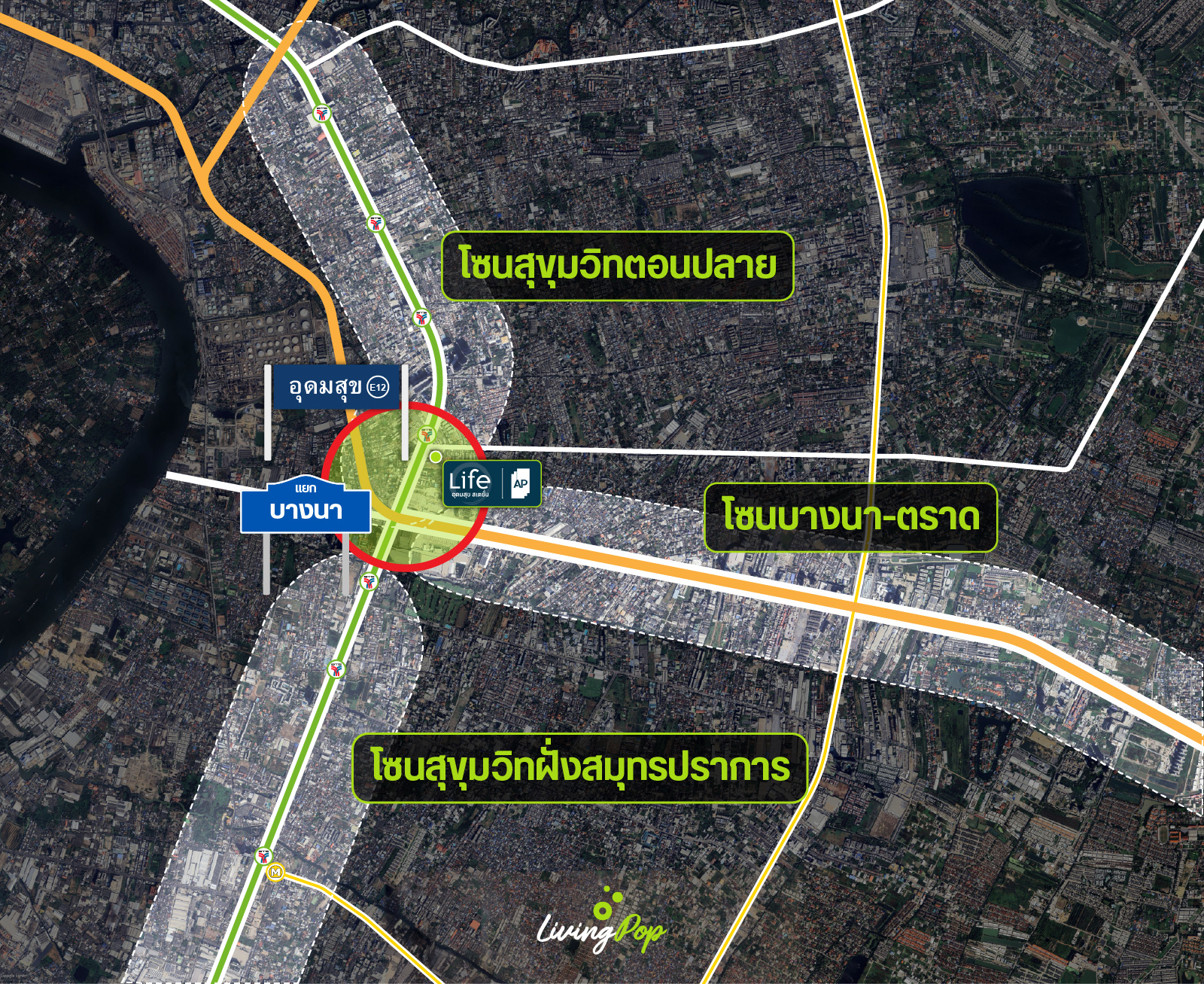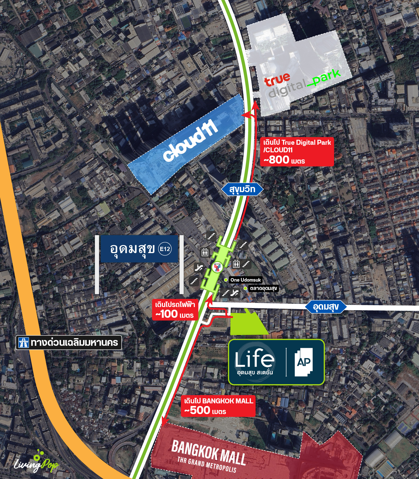 ทั้งหมดที่ว่ามา อยู่ในระยะเพียงแค่ 500 เมตร – 1 กิโลจากแยกอุดมสุขเท่านั้นเอง ทำให้ตรงนี้เป็นอีกโซนนึงที่มี Project ขนาดใหญ่ล้อมรอบเลย
