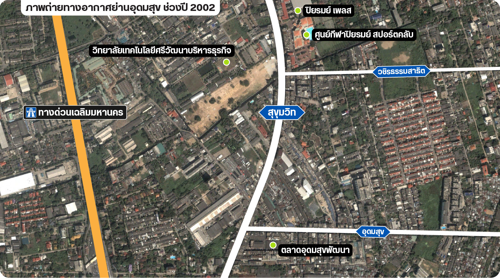 ถ้าพูดถึงจุดเริ่มต้นของความเป็น “ย่านคอนโด” ของทำเลอุดมสุข จริงๆ ต้องบอกว่าทำเลตรงนี้เองก็เป็นแหล่งชุมชนเดิมมาก่อนอยู่แล้วครับ จากการที่อยู่บนถนนเส้นหลักอย่าง “สุขุมวิท” ในยุคก่อนย่านตรงนี้ก็ยังเป็นทำเลกรุงเทพรอบนอกที่จะมีบ้านเรือนที่อยู่อาศัยแนวราบเป็นหลัก อย่างในซอยต่างๆ หรือบนถนนอุดมสุขเองก็มีหมู่บ้านค่อนข้างเยอะ