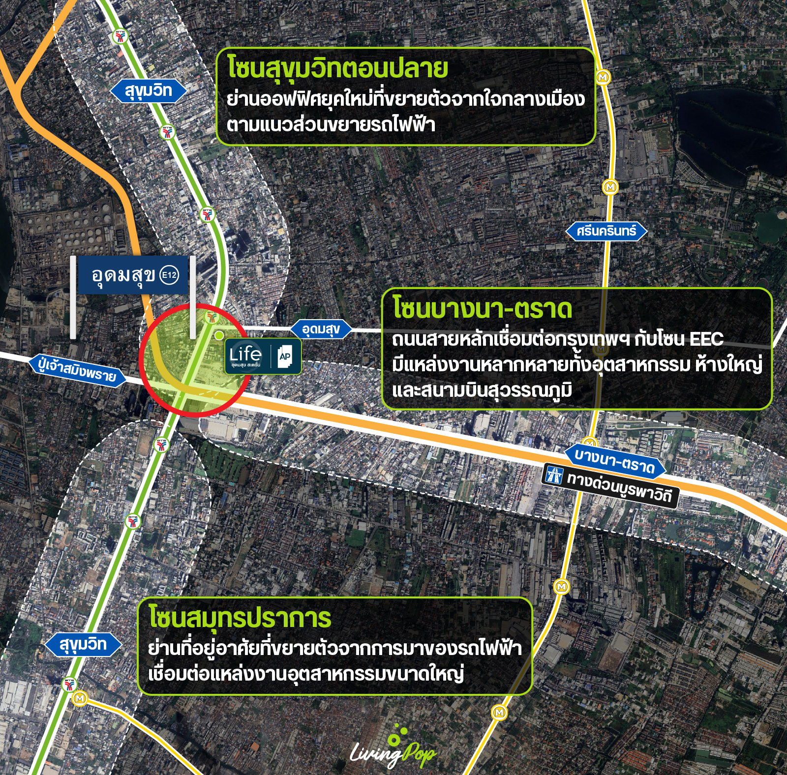 และแต่ละทำเลก็มีจุดเด่น มีความน่าสนใจ ดังนั้นก่อนจะไปเจาะดูตัวทำเล “อุดมสุข” เราขอพาไปดูจุดเด่นของแต่ละทำเลแต่ละโซนที่ว่ามาก่อนครับ