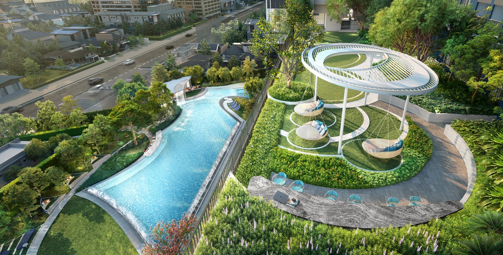 ตัวโครงการมาพร้อม Super Facilities อีก 5 ชั้น ครับ ไม่ว่าจะเป็นพื้นที่สีเขียวและสระว่ายน้ำ รวมถึง Facility ต่างๆ ที่ตอบโจทย์ ตั้งแต่ชั้น 1 ไปจนถึงชั้น Rooftop