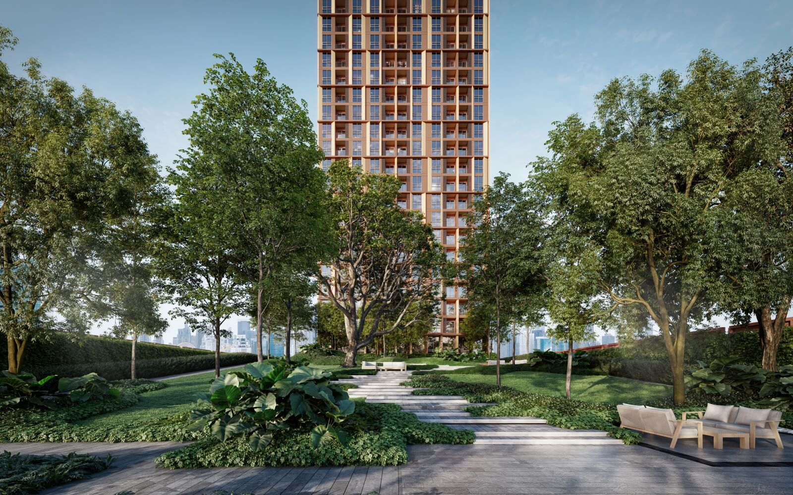 ที่นี่เป็นโครงการขนาดใหญ่บนพื้นที่มากกว่า 15 ไร่ เป็นที่ดินตอนลึกยาวเข้าไป จะมีทั้งหมด 1 อาคาร แต่แบ่งเป็น 4 Tower ครับ คือตั้งแต่ชั้น 1 – 5 เขาจะเชื่อมเป็นอาคารเดียวกันทั้งหมดเลย แล้วค่อยเริ่มแยกกันที่ชั้น 6 เป็นต้นไป แล้วถ้าเพื่อนๆ ดูในรูปก็จะเห็น ว่า Tower A กับ B ที่อยู่ด้านหน้าสูงกว่า เพราะเขาสูงถึง 47 ชั้นครับ ส่วน Tower C ที่อยู่ถัดไปสูง 34 ชั้น และอาคารในสุด Tower D สูง 32 ชั้น ถึงแม้ว่าจะอยู่ด้านในสุด แต่เขามีความพิเศษกว่า Tower อื่นๆ คือสามารถเลี้ยงสัตว์ได้ บวกกับมี Facilities และพื้นที่ส่วนกลางสำหรับสัตว์เลี้ยงของเราด้วย