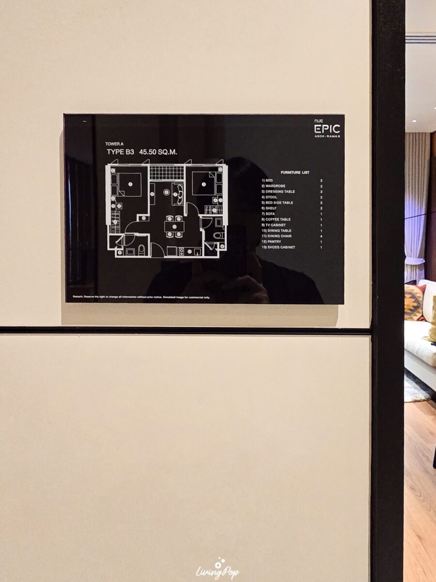 ห้องตัวอย่าง 2 Bed 2 Bath ขนาด 45.50 – 53.90 ตารางเมตร