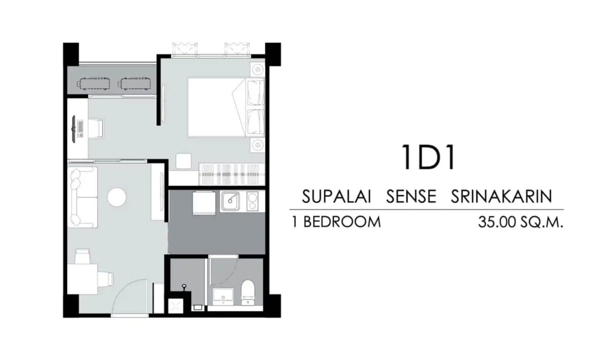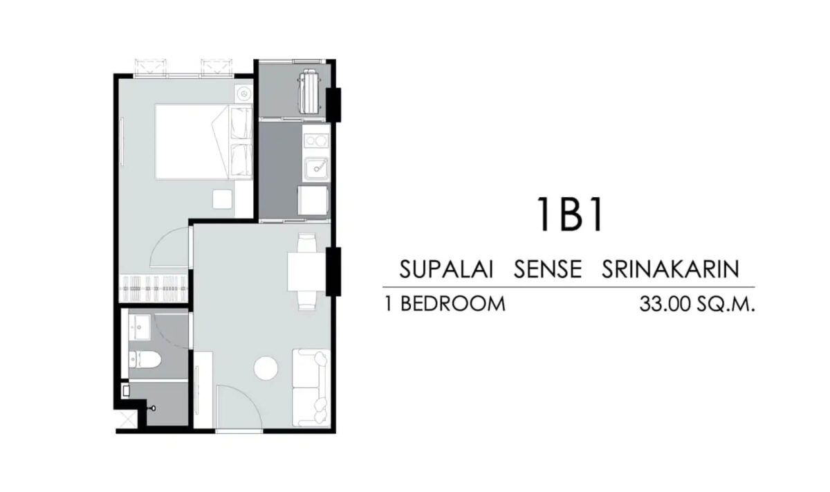ห้องตัวอย่าง 1 Bedroom 33 ตารางเมตร