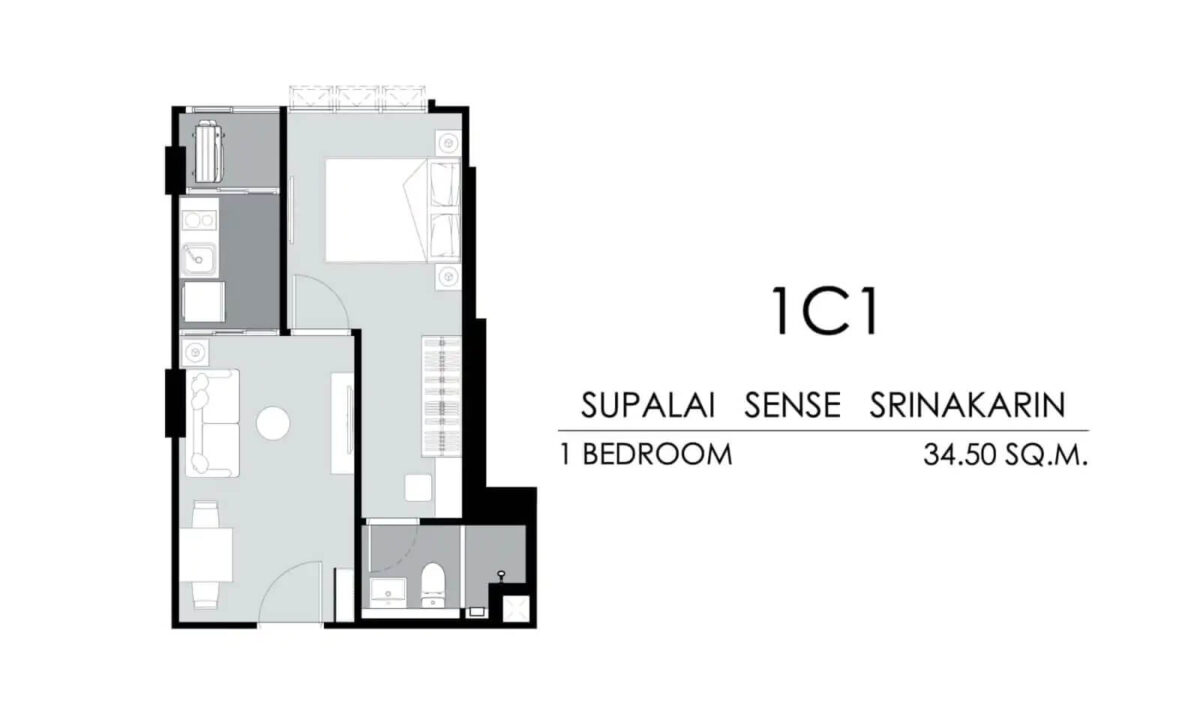 ต่อไปเป็นไทป์ 1C1 ที่ Layout จะแตกต่างจากห้องก่อนหน้าเล็กน้อยครับ เขาโยกเอามุมกินข้าวไปไว้ติดกับทางเข้าแทน แล้วค่อยเป็นมุมนั่งเล่น ได้ครัวปิดติดระเบียงเหมือนเดิม ห้องนอนกว้างขึ้น มีพื้นที่ทำเป็น Walk-in Closet ด้วย ส่วนห้องน้ำก็จะอยู่ในห้องนอนเลย ก็อาจจะเดินลึกนิดนึง
