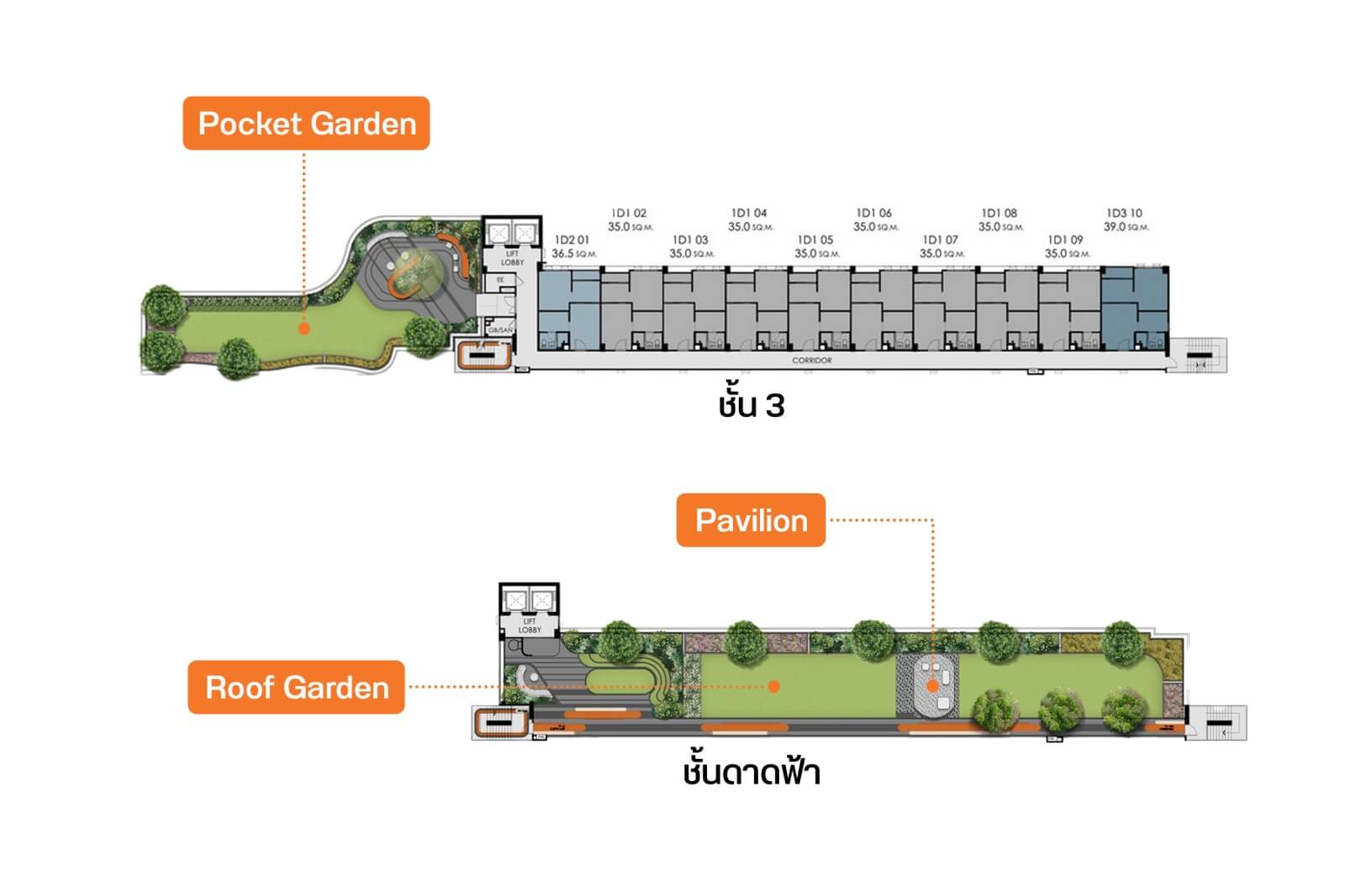 พื้นที่สวนจะอยู่ที่ชั้น 3 และชั้นดาดฟ้า