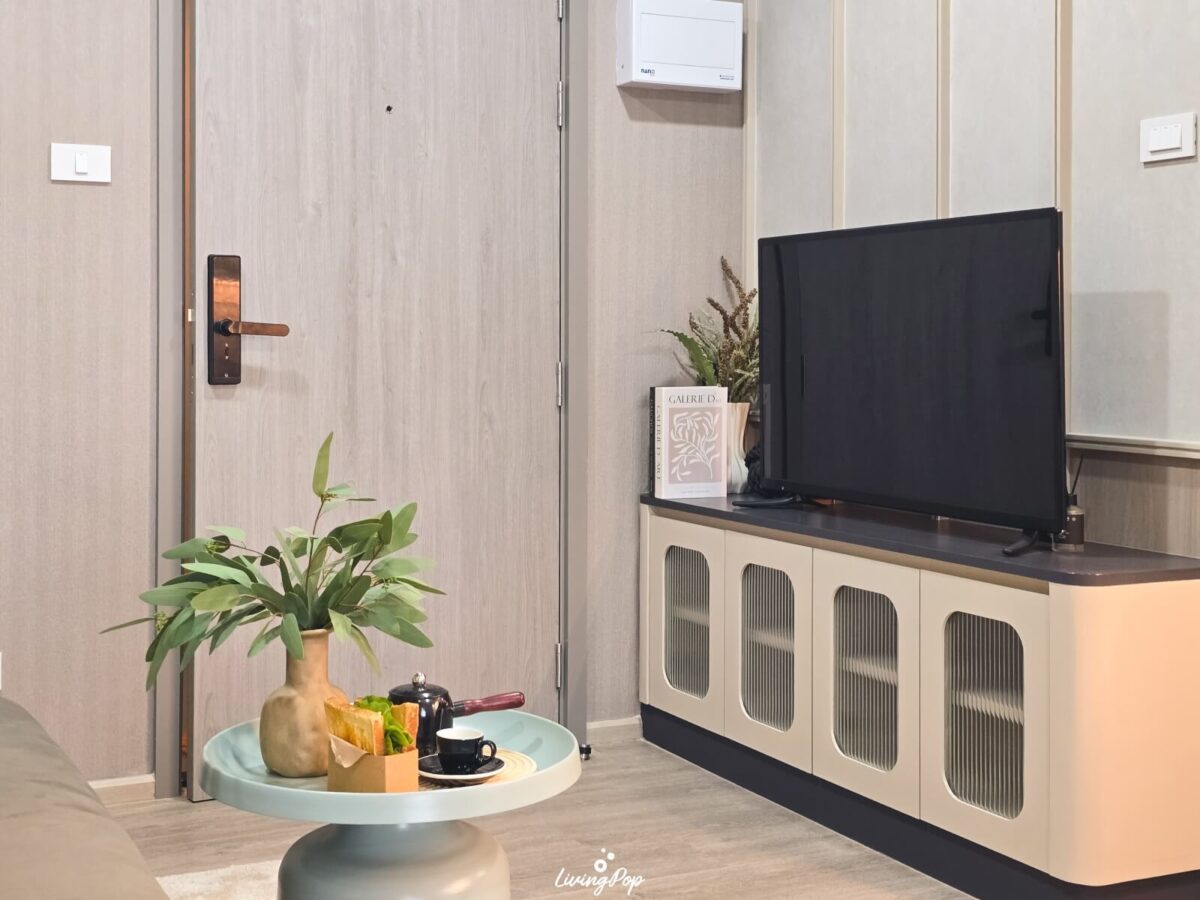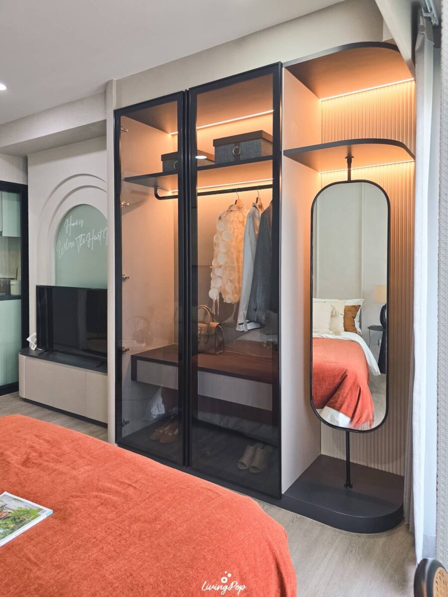 ห้องแบบ Fully Fitted ของโครงการ นอกจากชุดครัวกับห้องน้ำแล้ว ยังมีแอร์ของ Samsung และ Digital Door Lock ของ Hafele ติดตั้งมาให้ด้วยครับ และทุกห้องโครงการจะติด Wallpaper มาให้เรียบร้อย