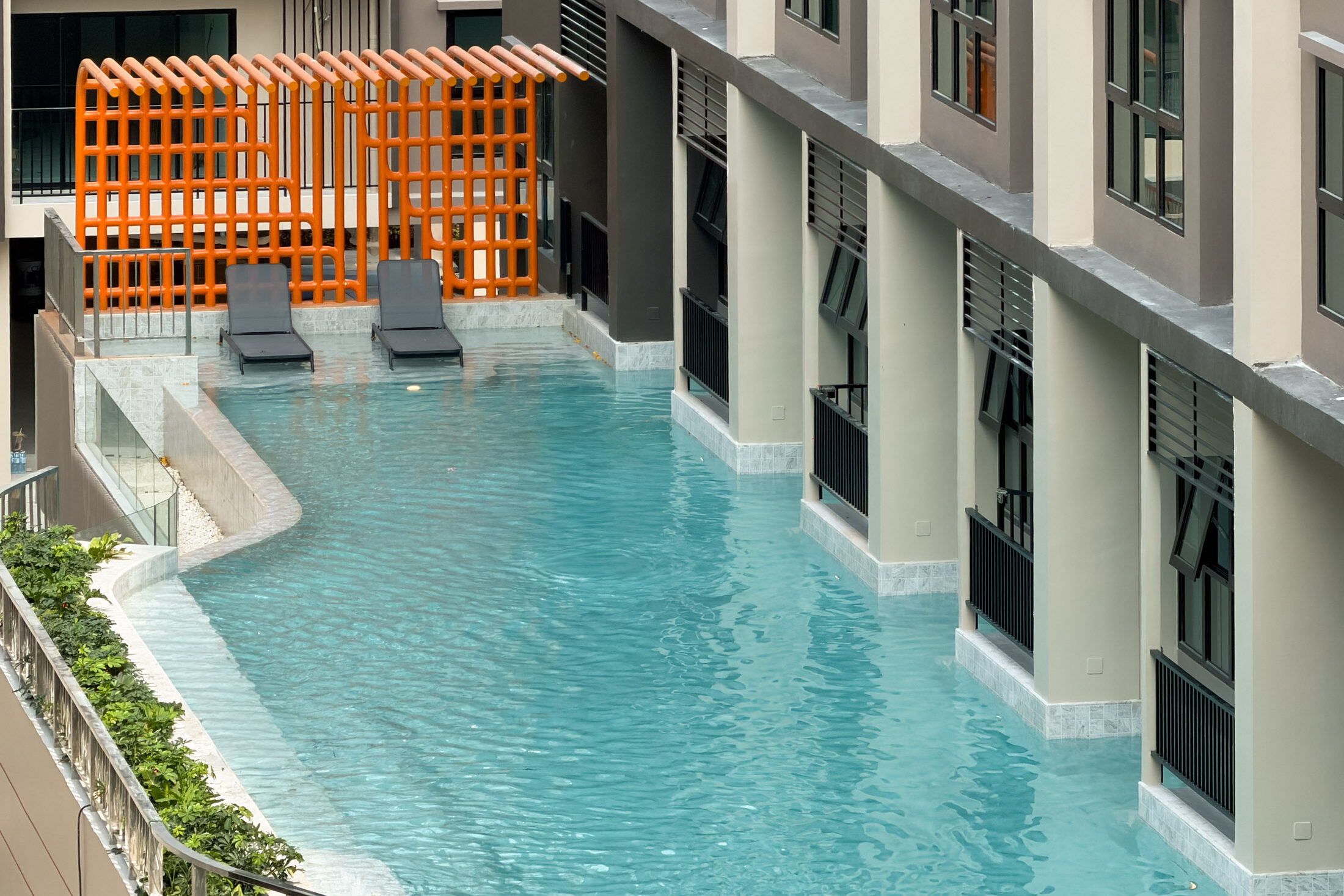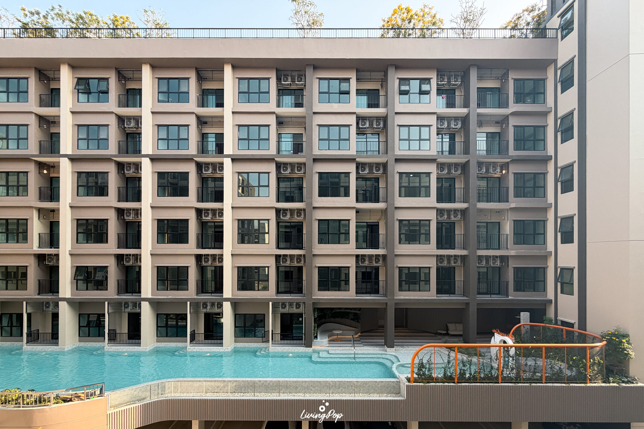 ตึก A จะเป็นตึกที่ต่างกับตึก B และ C พอสมควรครับ อย่างที่เล่าไปว่าตึกนี้จะเป็น Single Corridor มีห้องพักแค่ฝั่งเดียว ชั้นนึงเลยมีแค่ 10 ห้องเท่านั้น เป็น 1 Bedroom 34.5-39 ตารางเมตรล้วนๆ ยิ่งชั้นสระว่ายน้ำที่เป็น Pool Access จะมีห้องพักแค่ 7 ห้องเท่านั้น ซึ่งความแตกต่างอีกอย่างคือตึกนี้จะมีเพียงแค่ 7 ชั้นครับ ทำให้ความสูงของเพดานห้องในตึก A จะแตกต่างจากตึกอื่นด้วย โดยห้อง Pool Access จะได้เพดานสูง 2.7 เมตร และชั้นอื่นๆ ของตึก A สูง 2.6 เมตร ส่วนห้องพักตึก B และ C เพดานจะสูง 2.5 เมตรครับ