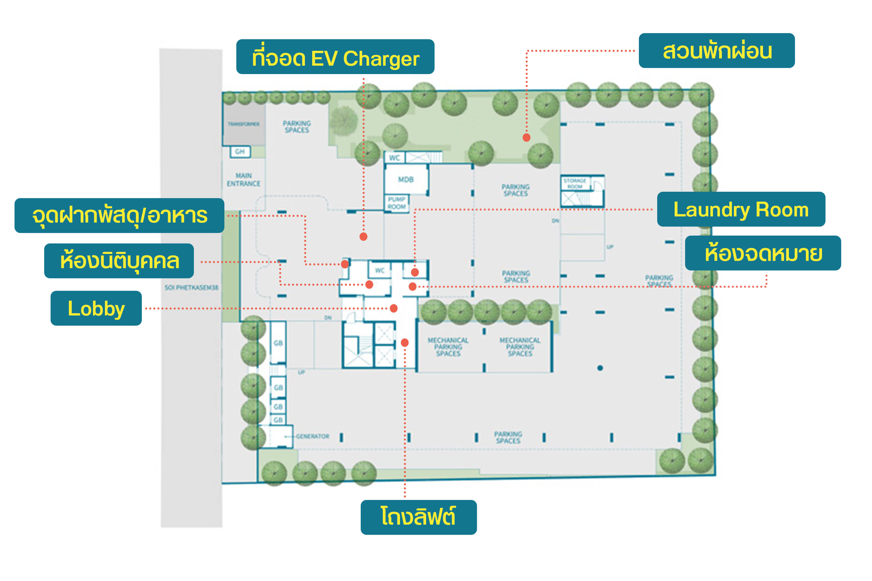 ในโครงการไม่ได้มีแค่พื้นที่ส่วนกลาง แต่ยังมีสิ่งอำนวยความสะดวกอื่นๆ ด้วยนะ