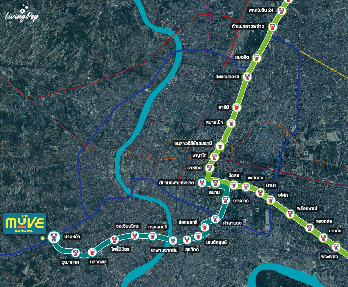 เพื่อให้เห็นภาพมากขึ้น เรามีภาพคร่าวๆ มาให้ดูกันครับ ว่าสายนี้ผ่านจุดสำคัญอะไรในโซนเมืองบ้าง