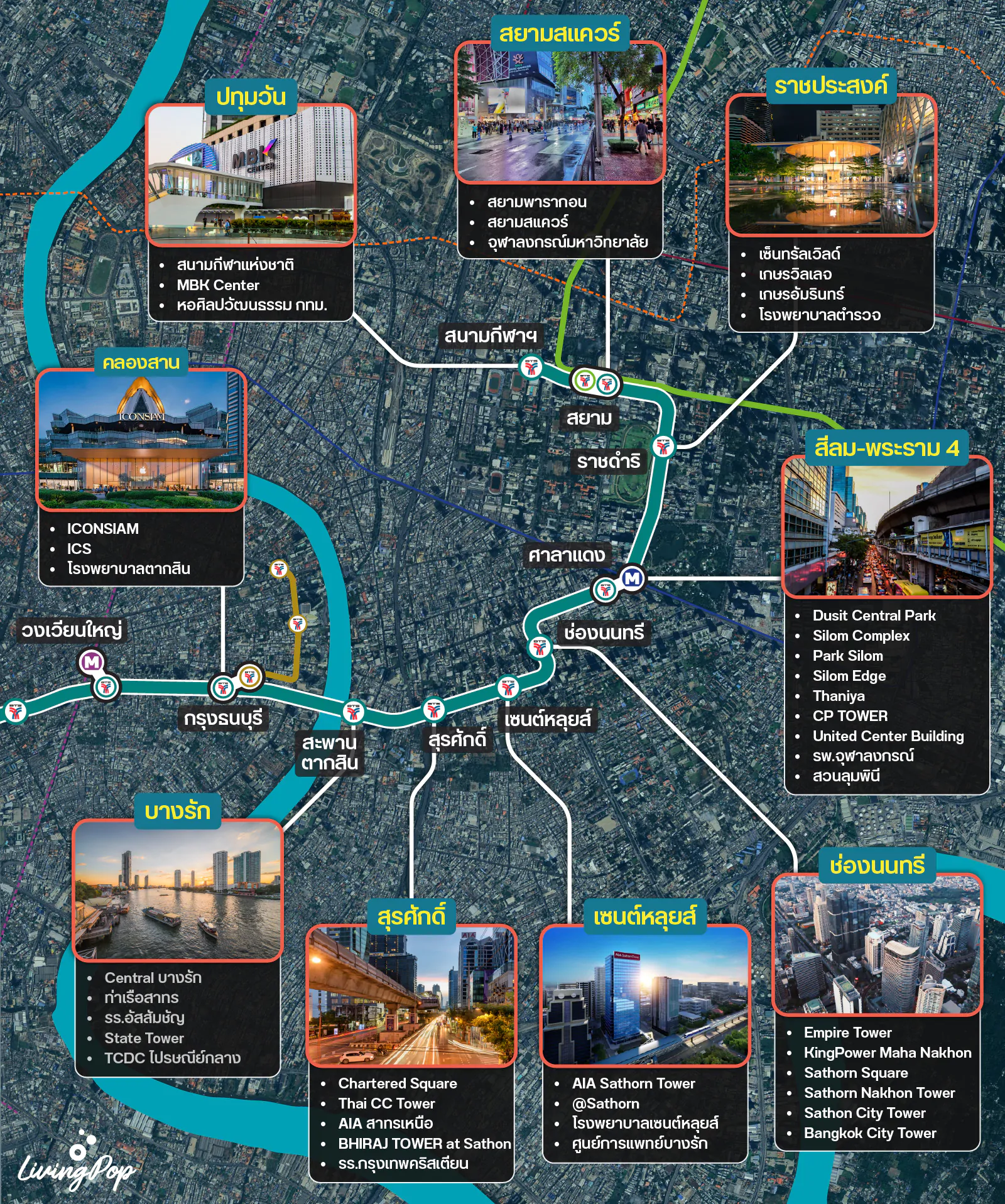 ซึ่งรถไฟฟ้า BTS สายนี้จะวิ่งแบบผ่ากลางย่านธุรกิจอย่างสีลมและสาทรเข้าไปเลย ดังนั้นใครที่ทำงานในตึกออฟฟิศต่างๆ ก็จะค่อนข้างสะดวก ใกล้ห้างใหม่ล่าสุดอย่าง Dusit Central Park, ใกล้รพ.จุฬาฯ, ใกล้หลายห้างในย่านสยามทั้ง Siam Paragon, Siam Center, Siam Discovery, MBK Center, Central สาขาใหม่ที่กำลังก่อสร้าง (สกาลาเดิม), CentralWorld และโซนสยามสแควร์ และใกล้มหาวิทยาลัยขนาดใหญ่อย่างจุฬาลงกรณ์มหาวิทยาลัยด้วยเช่นกัน