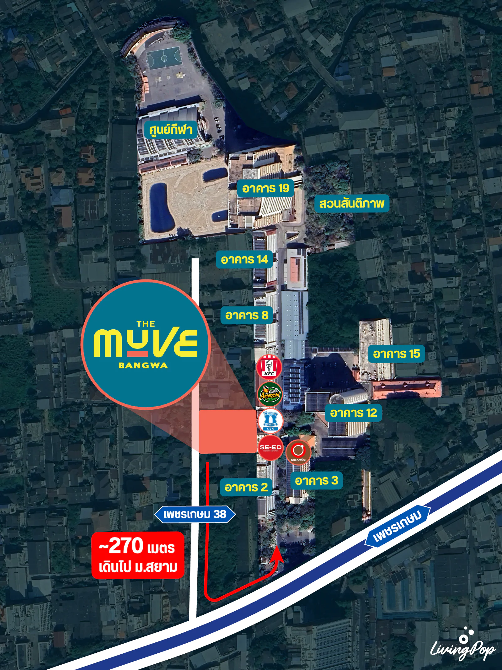 นอกจากนี้พออยู่ใกล้ม.สยาม นอกจากมี Demand ในด้านการเช่าต่างๆ แล้ว ในม.สยามเองก็มีร้านของกินต่างๆ อย่าง KFC, Cafe Amazon, True Coffee และ Foodcourt เป็นที่พึ่งพิงหาของกินอยู่ในระยะเดินจากโครงการได้เช่นเดียวกันครับ