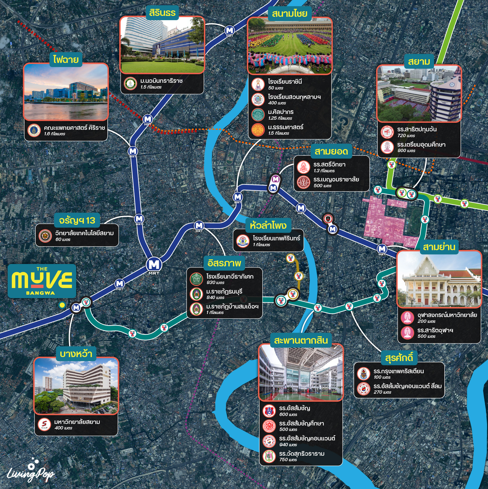 แต่ไม่ใช่แค่ ม.สยาม ตามเส้นทางรถไฟฟ้าทั้ง 2 สายก็มีทั้งมหาวิทยาลัยและโรงเรียนชั้นนำเพียบ