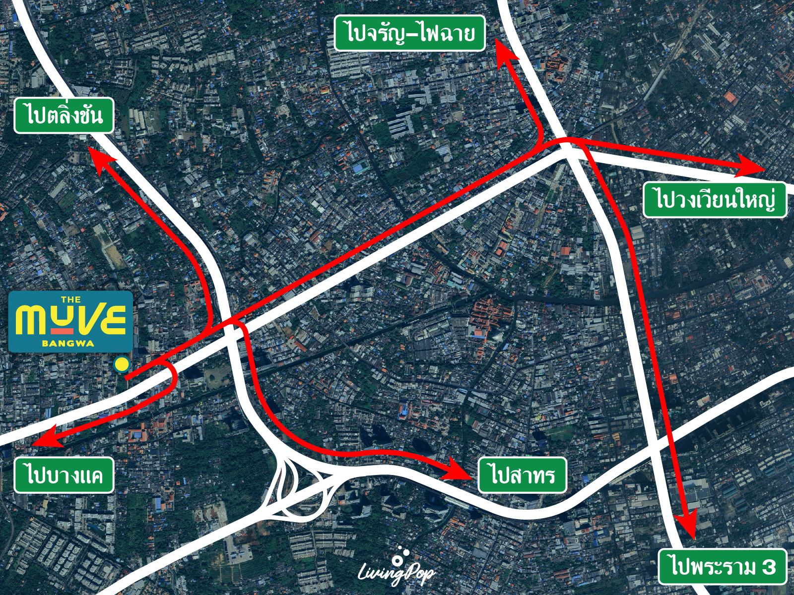 ส่วนบริเวณย่านสถานีบางหว้า ตรงนี้ก็จะมีถนนราชพฤกษ์ตัดผ่านครับ สามารถใช้เส้นทางนี้เพื่อเข้าสู่เมืองย่านสาทรได้โดยตรง