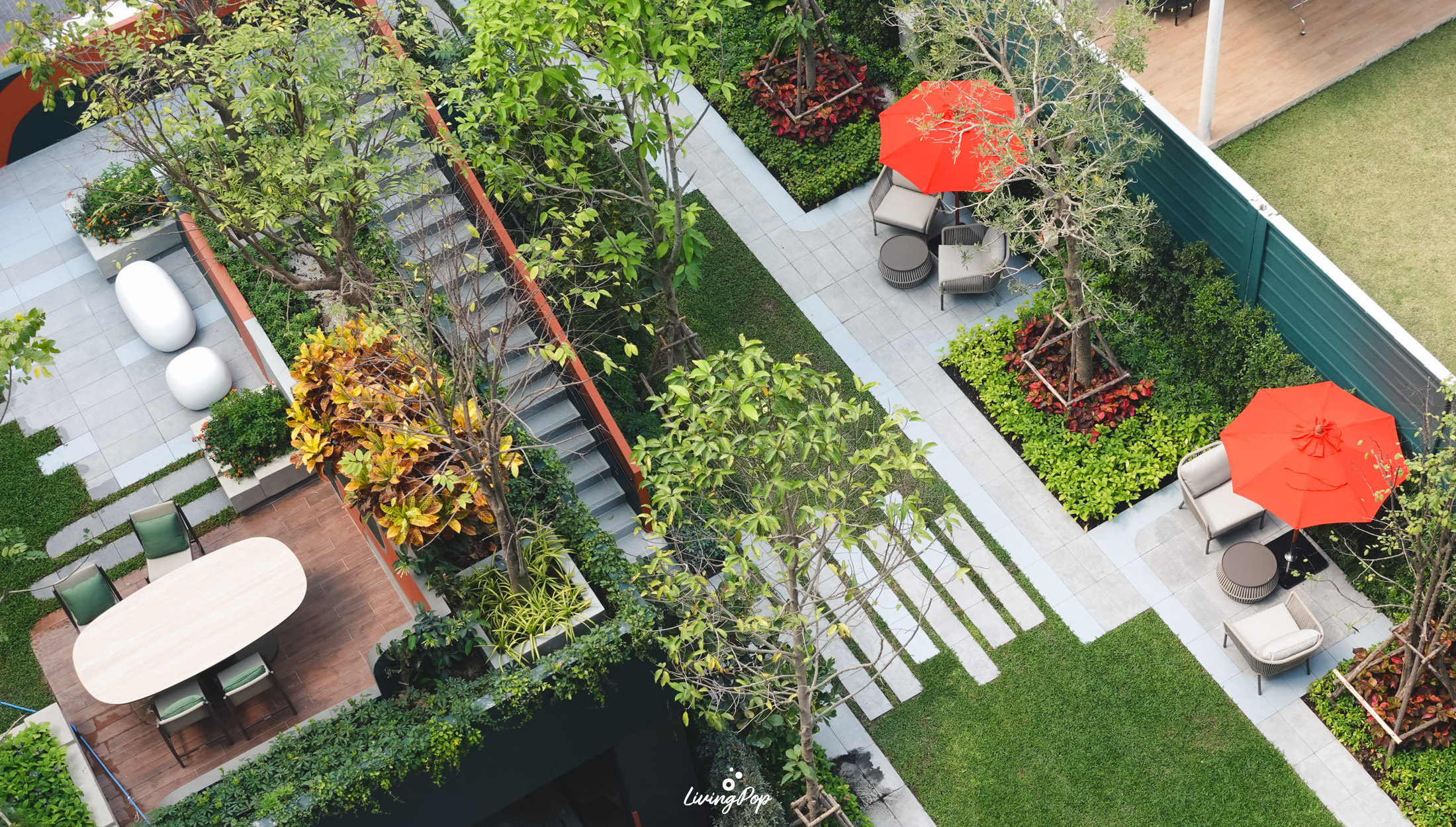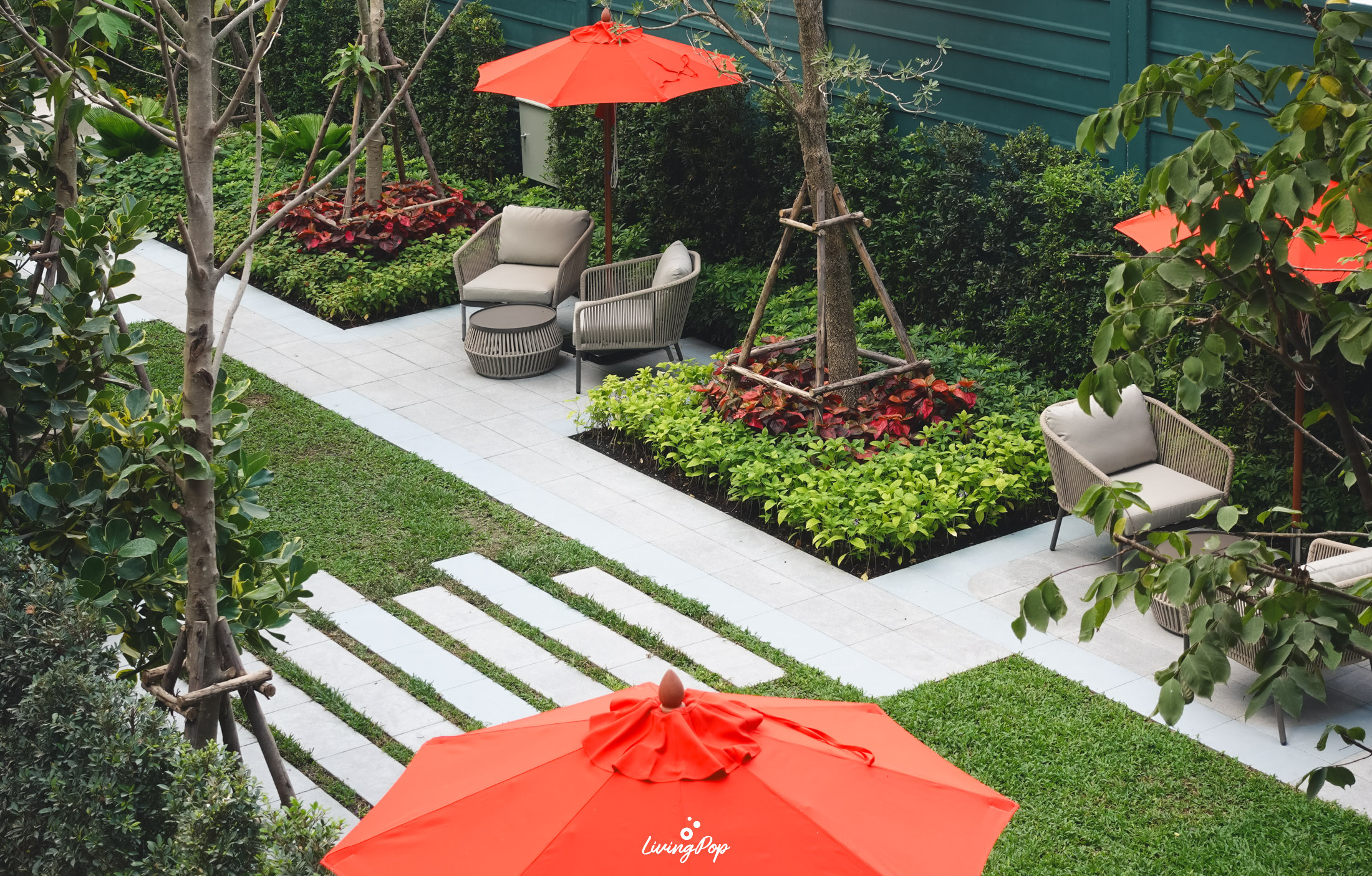 เดินมาหน่อยก็จะเจอสวนสีเขียวแบบนี้เลย ส่วนใหญ่จะเป็นไม้พุ่มครับ ต้นไม้จะตั้งโดดเด่นอยู่หนึ่งต้น โอบล้อมไปด้วยบาร์และพื้นที่นั่งเล่น ส่วนด้านข้างจะเป็น Sansiri Backyard สวนที่ต้องมีในทุกโครงการของแสนสิริ เอาไว้ปลูกพืชผักสวนครัวครับ เป็นสวนที่ใช้กินก็ดี มาพักผ่อนก็ได้เช่นกัน