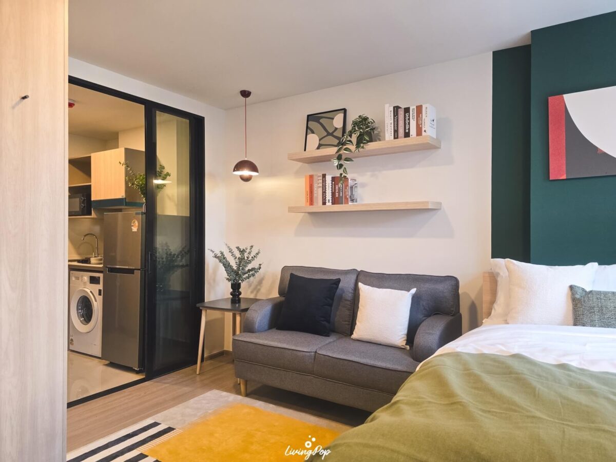 เฟอร์นิเจอร์ให้มาครบทั้งลอยตัวและ Built-in ใช้พื้นที่ในห้องคุ้มค่าทุกตารางเมตร