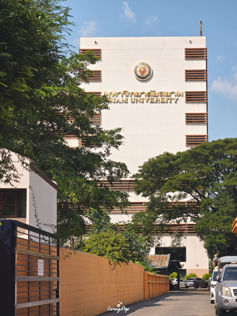 อีกจุดขายนึงของโครงการนี้เลย คือเรื่องความใกล้ ม.สยามครับ ซึ่งเป็นอีกหนึ่งมหาวิทยาลัยดังของย่านฝั่งธนบนถนนเพชรเกษม ที่นี่น่าจะเป็นหนึ่งในคอนโดที่ใกล้ที่ ม.สยามอันดับต้นๆ ใกล้ขนาดที่ว่ารั้วด้านหลังของโครงการนี่ก็อยู่ติดกับรั้วของ ม.สยามแล้วครับ โดยจะมีระยะเดินไปมหาวิทยาลัยอยู่ที่ประมาณ 270 เมตรเท่านั้น
