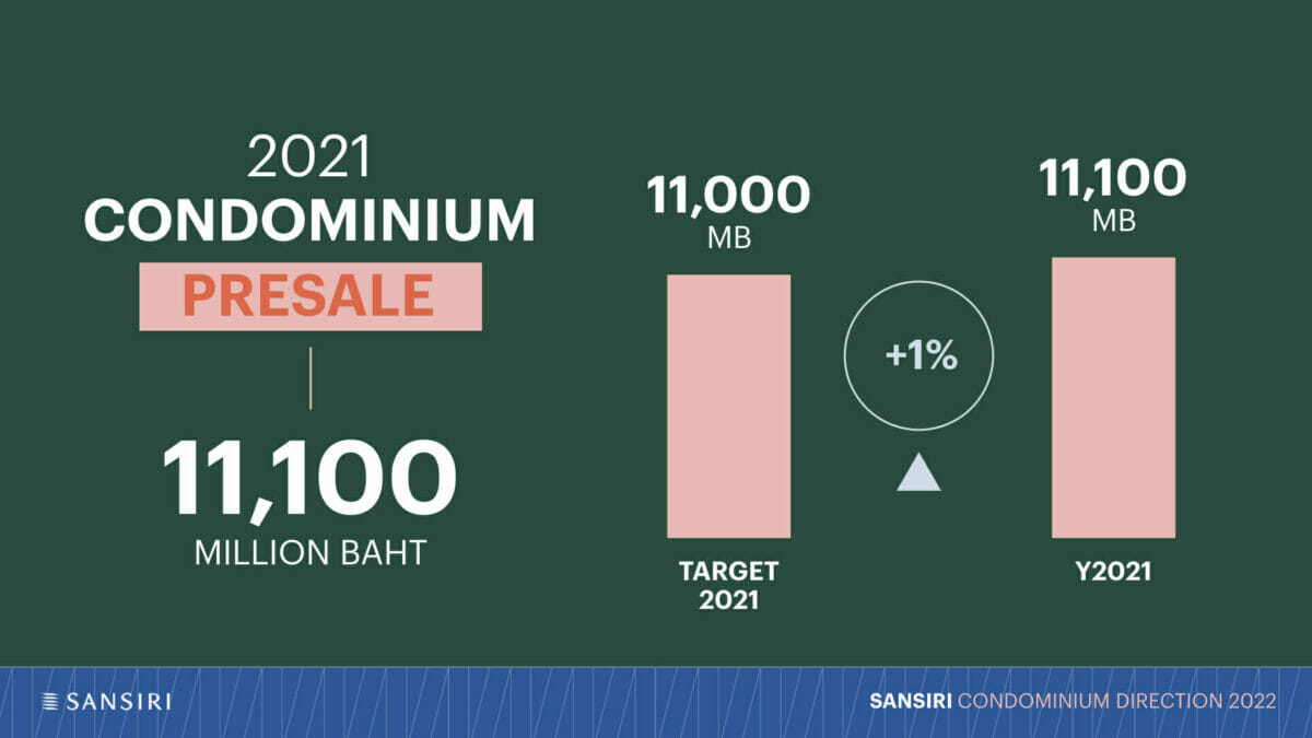 - ตั้งเป้ายอดขายคอนโดมิเนียมปีนี้ 14,000 ล้านบาท โตขึ้นเกือบ 30% พร้อมเป้าโอน 13,000 ล้านบาท
