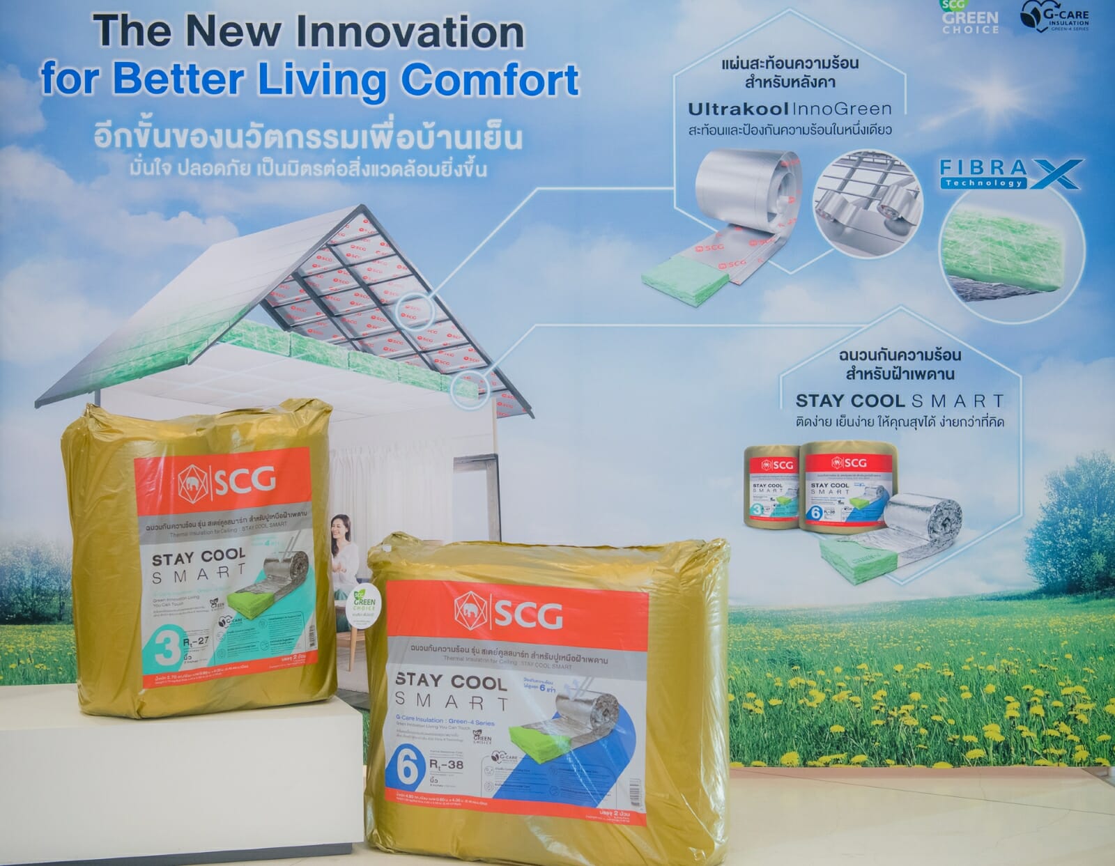มากกว่าแค่การกันร้อน ด้วยนวัตกรรม G-Care Insulation : Green-4 Series กับ 4 จุดเด่นที่เหนือกว่า สำหรับฉนวนกันความร้อน เอสซีจี รุ่น สเตย์คูลสมาร์ท และแผ่นสะท้อน ความร้อน เอสซีจี รุ่นอัลตราคูล อินโนกรีน