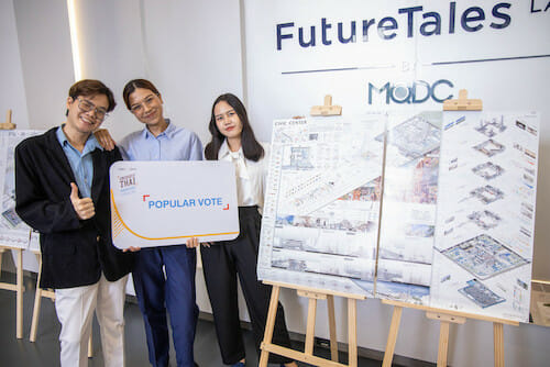- 3 ผลงานคนรุ่นใหม่ไอเดียสุดครีเอทีฟ สร้างสรรค์ผลงานพื้นที่สาธารณะมิติใหม่ด้วยแรงบันดาลใจจาก “ความเหลื่อมล้ำทางสังคม” และ “Metaverse” คว้ารางวัลชนะเลิศ Gold Award พร้อมทริปศึกษาดูงาน ณ สหรัฐอาหรับเอมิเรตส์ มูลค่ารางวัลรวมกว่า 700,000 บาท ขณะที่ผลงาน Popular Vote ใช้ “เอกลักษณ์ไทยอนันตกาล” มิติแห่งเวลาที่แตกต่างมาสร้างสรรค์พื้นที่สาธารณะแห่งความหลากหลาย